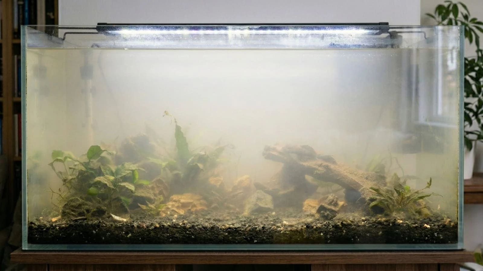 Всім привіт! Запустив свій перший акваріум на 60 літрів три дні тому. Поклав грунт, посадив кілька рослин, увімкнув фільтр. Сьогодні зранку прокинувся, а вода стала зовсім мутною, білою. Риб ще не запускав, слава богу. Що я зробив не так? Чи потрібно терміново міняти всю воду?
